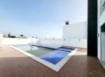 Salon vue piscine, cuisine ouverte, une suite avec dressing et WC pour les invités.