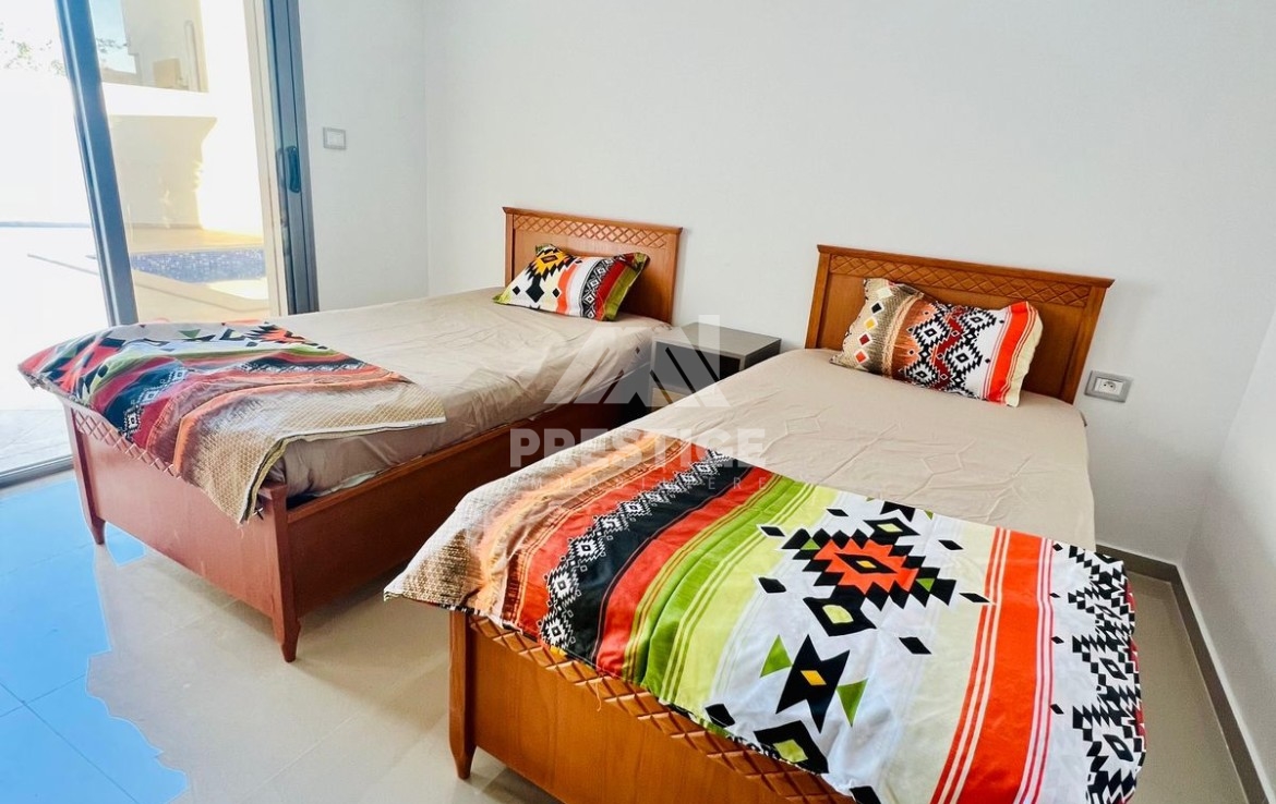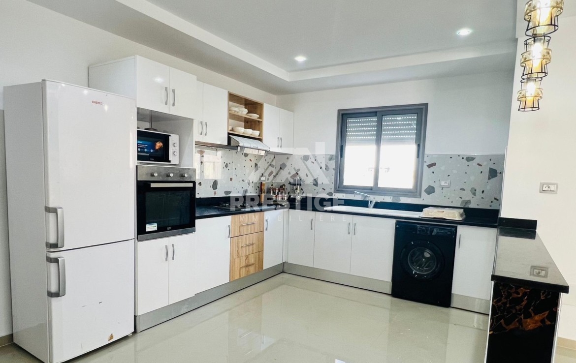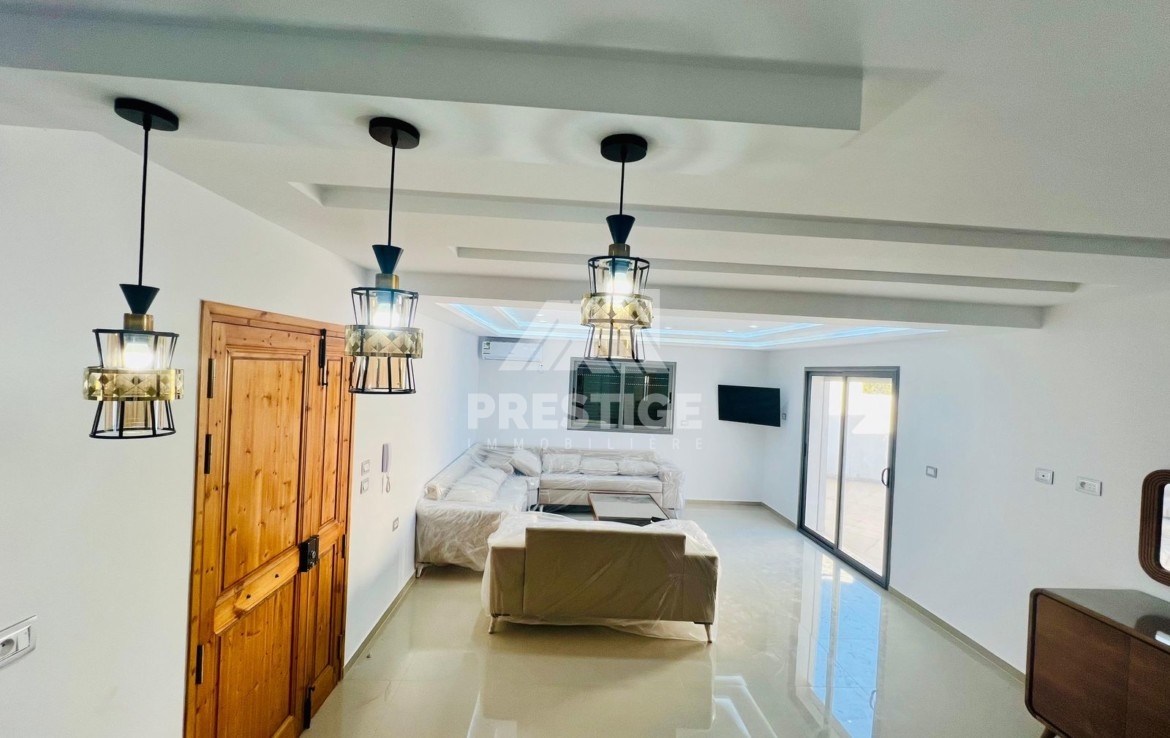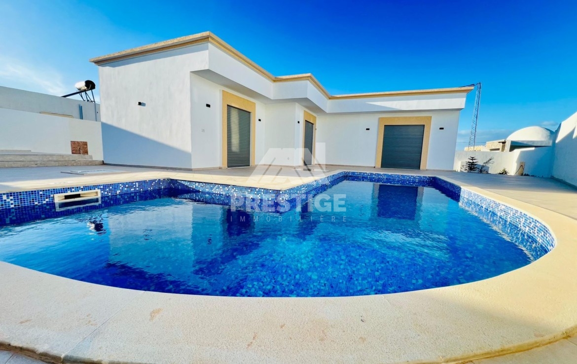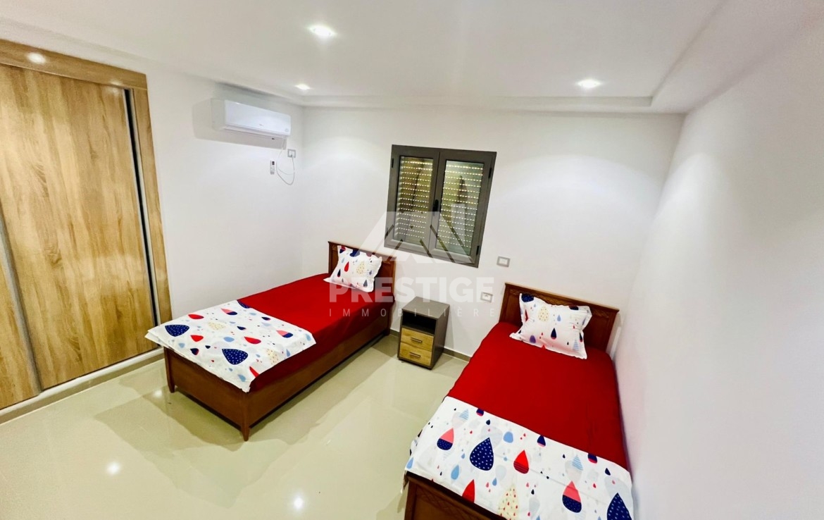 Une jolie villa plain-pied avec piscine totalement équipée et meublée à louer située dérrière la clinique Arij Midoun .